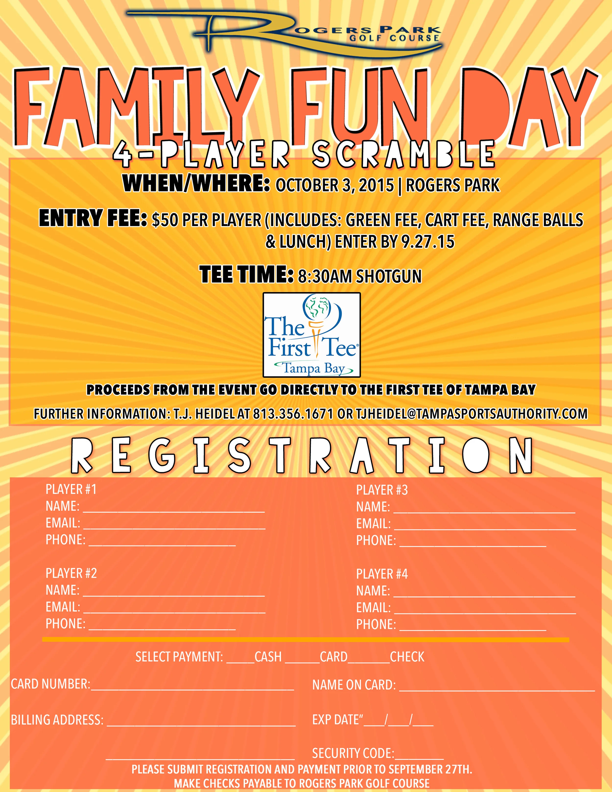 To make a reservation, call: Babe Zaharias GC – (813) 631-4374, Rogers Park GC – (813) 356-1670, Rocky Point GC – (813) 673-4316 or book online atwww.igolftampa.com. Reservations can be made up to 4 days in advance.