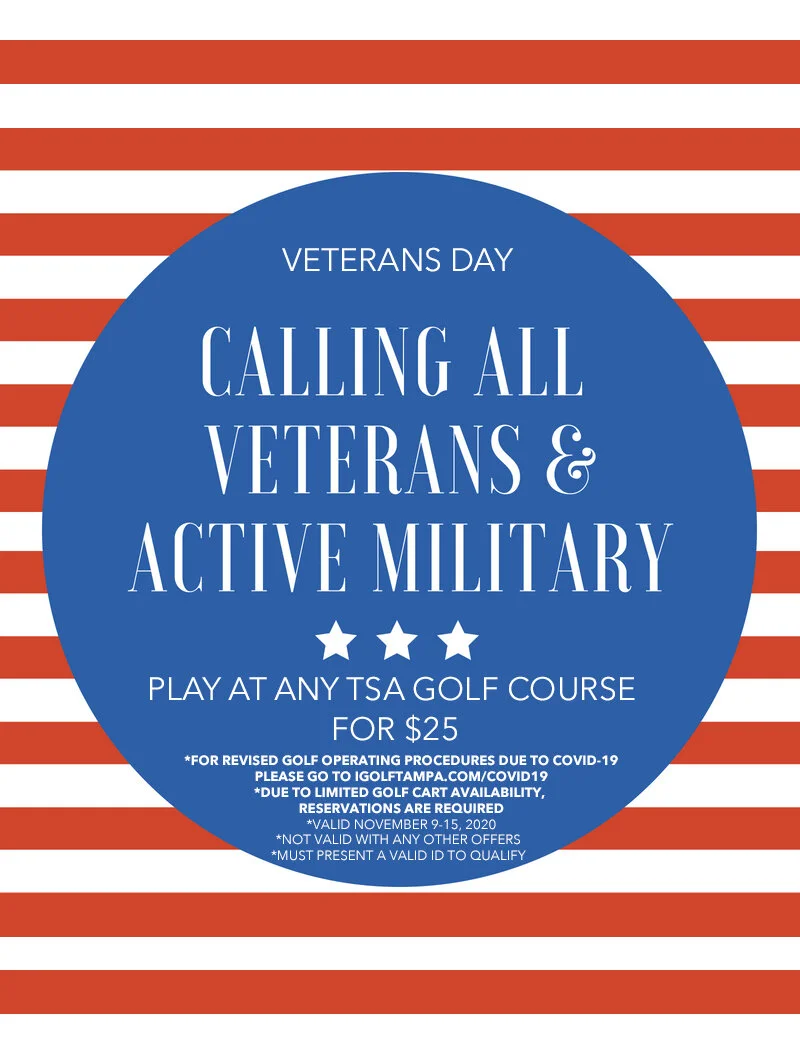 Calling all Veterans & Active Military! Join us Veterans Day weekend at any of our 3 golf courses for just $25!